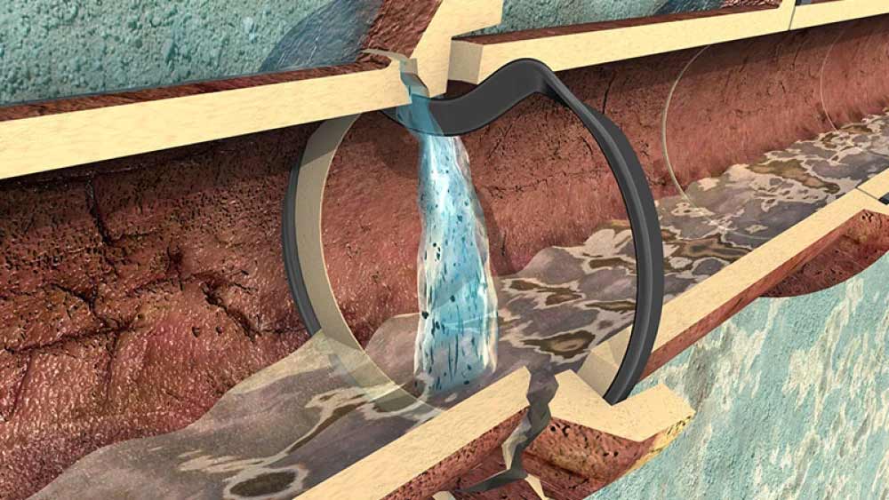 Infiltration: Wenn sauberes Grund- und Regenwasser in defekte Abwasserrohre eindringt, muss dieses in der Kläranlage ebenfalls gereinigt werden und führt somit maßgeblich zu den steigenden Abwassergebühren.